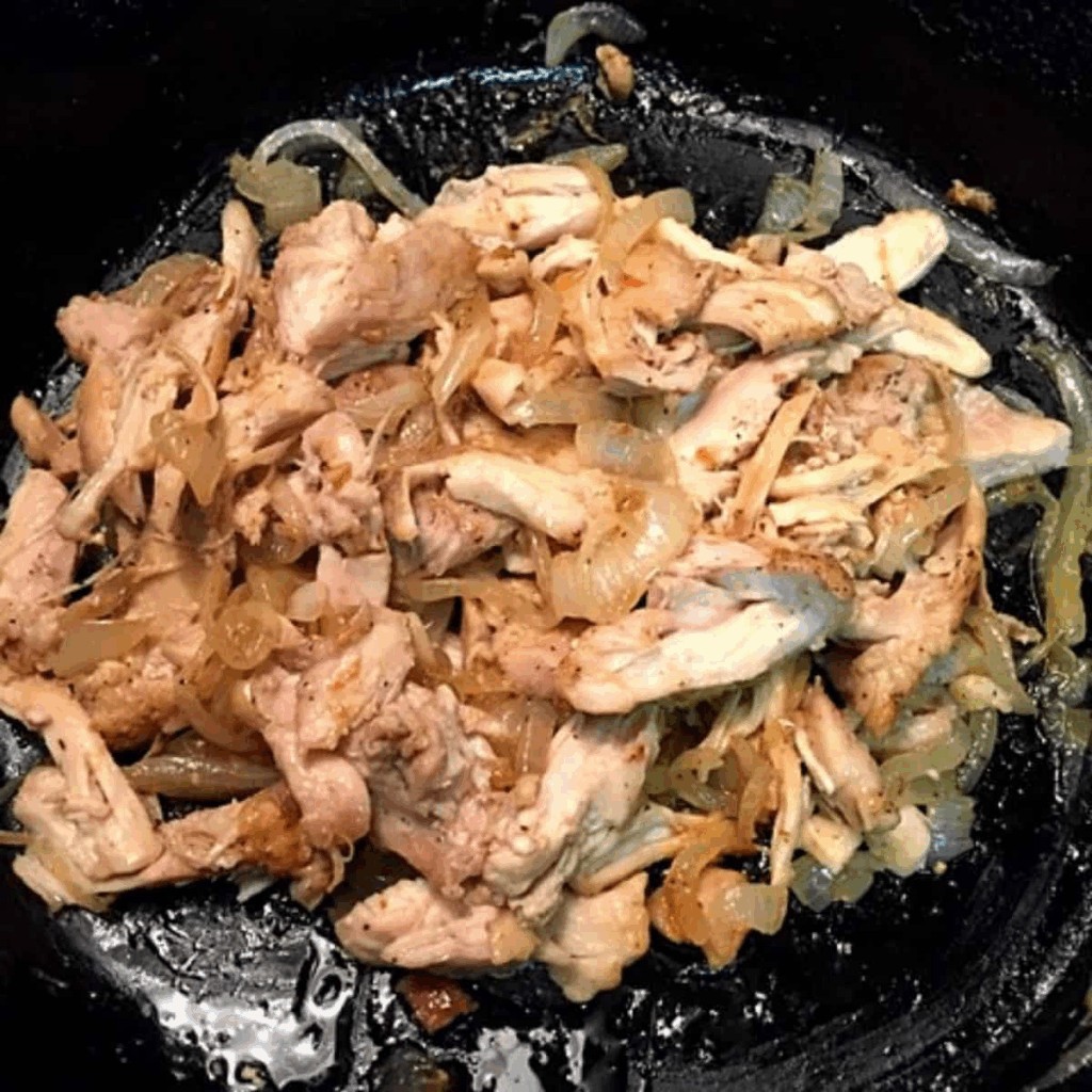 - Once the chicken is cooked through, shred it using two forks directly in the skillet. Mix in the BBQ sauce.